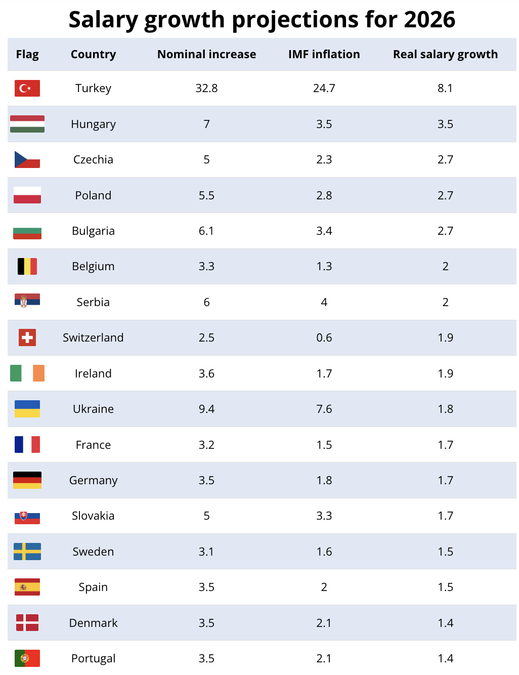 Real wages, which reflect income adjusted for price changes, are projected to increase by 2.7 percent. The same rate is expected in Bulgaria and Poland, placing the three countries just behind Hungary, which is forecast to lead the EU with growth of 3.5 percent.