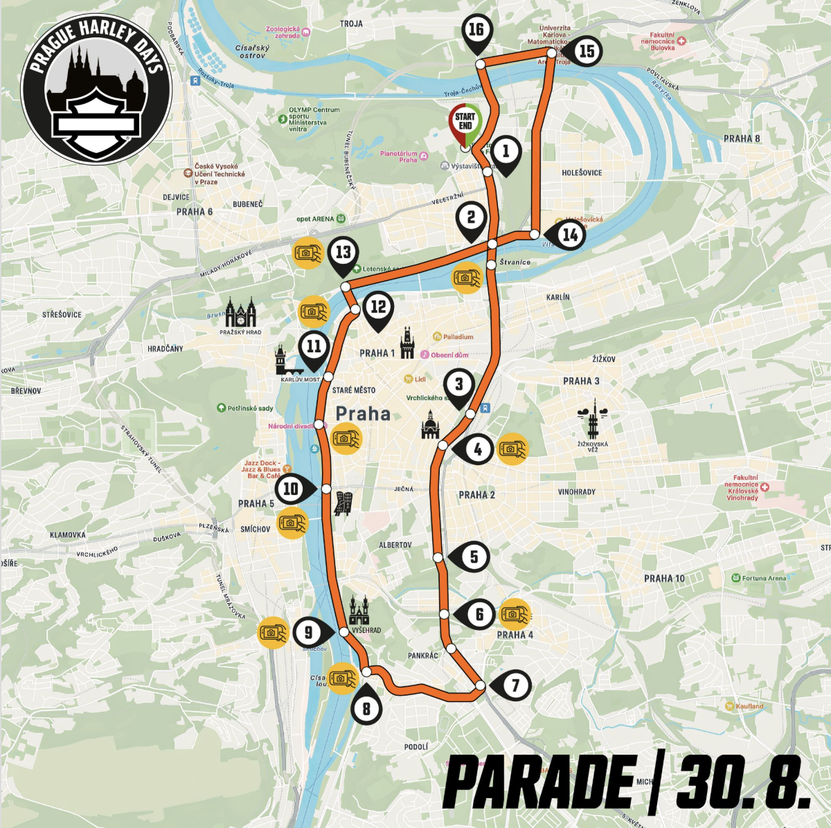 The route will lead from Holešovice across key city arteries, passing through central districts before looping back toward the starting point.