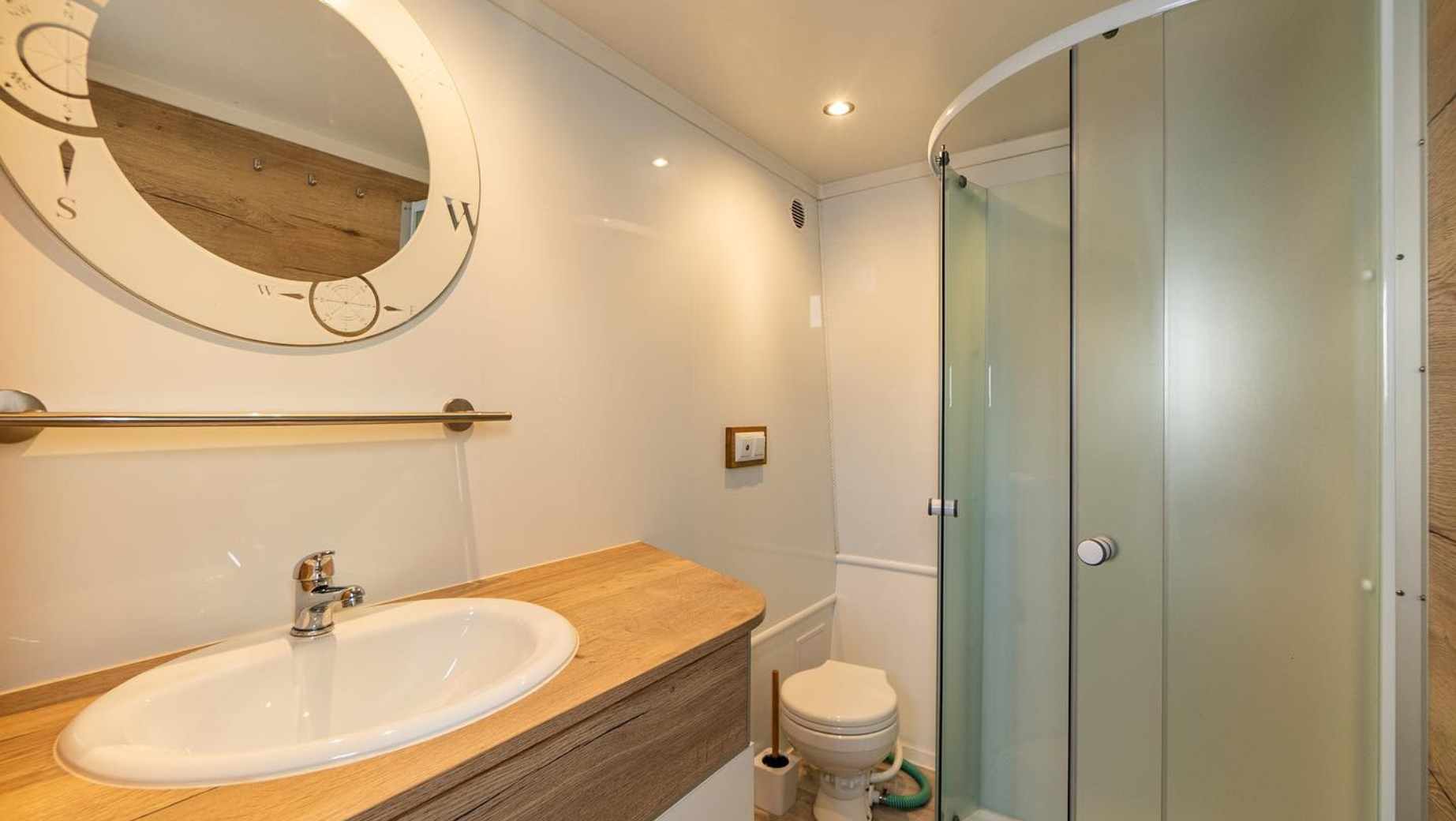 The boat was surprisingly spacious, with an upper deck, a working grill, and even a small bar area with a beer tap. Below deck, there’s a bathroom with a shower and toilet, which, as anyone who’s done long boat trips knows, is not something to take for granted.